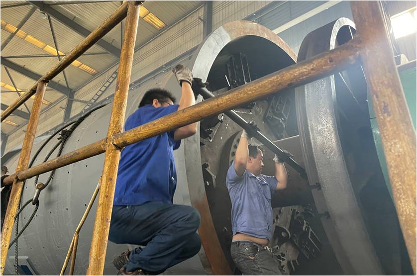 - 12月25日,我公司生產(chǎn)的兩臺(tái)φ5×15m陽(yáng)極爐成功裝車(chē),即將發(fā)往客戶現(xiàn)場(chǎng)。 該產(chǎn)品直徑5米、長(zhǎng)15米,單臺(tái)爐體及配套設(shè)備重量達(dá)到385噸。雖然直徑高達(dá)5米,從爐體一端到15米